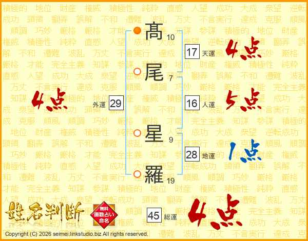 髙(10画)尾(7画) 星(9画)羅(19画)