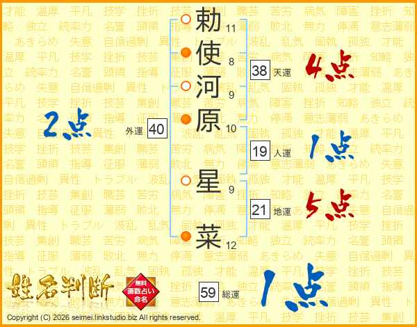 勅使河原星菜さんの天運は38画の4点!
