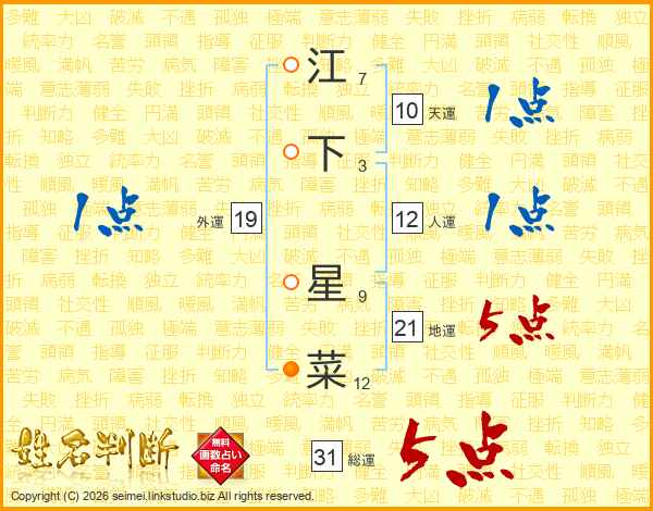 江下星菜さんの総運は31画の5点!