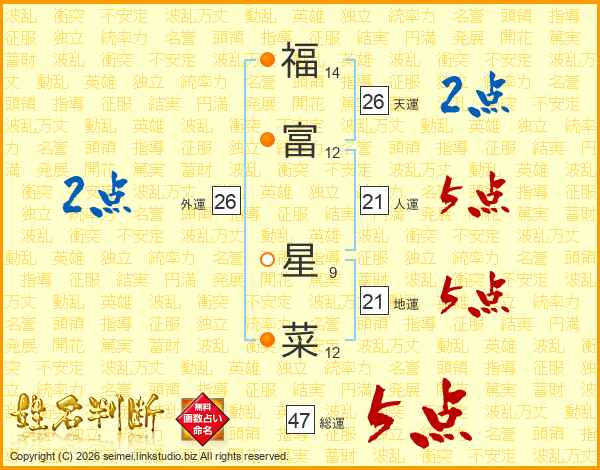 福富星菜さんの総運は47画の5点!