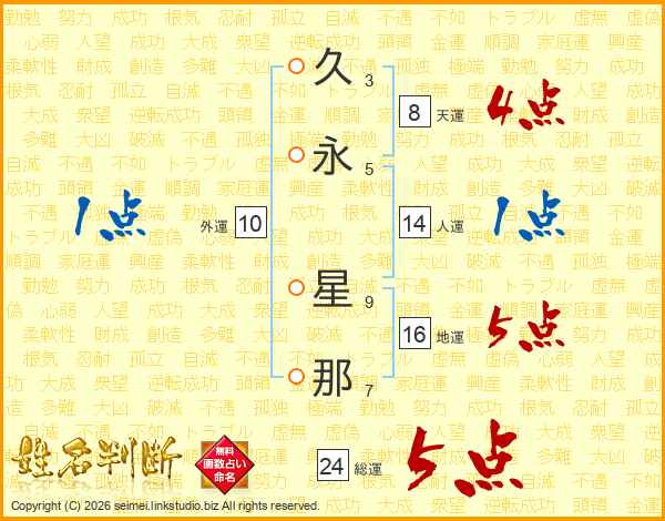 久(3画)永(5画) 星(9画)那(7画)