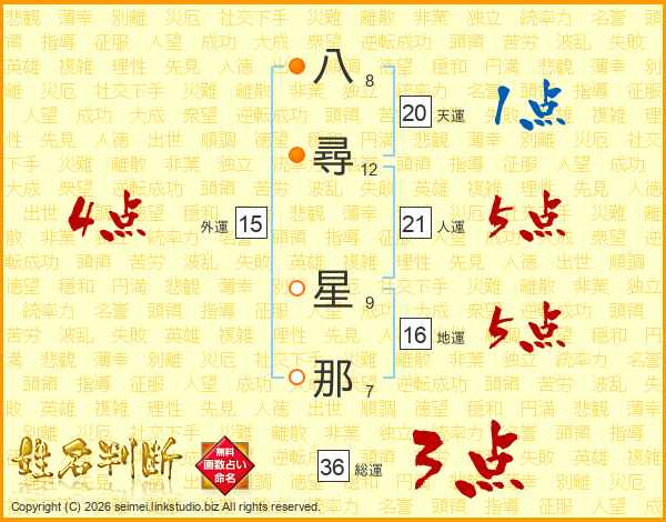八尋星那さんの総運は36画の3点!