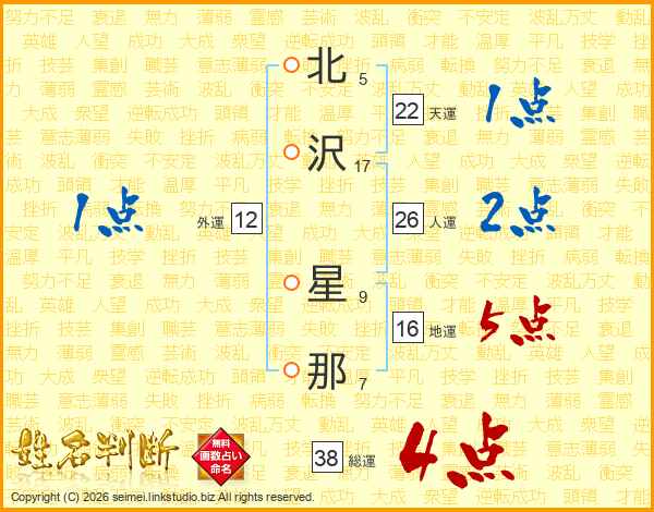 北沢星那さんの総運は38画の4点!