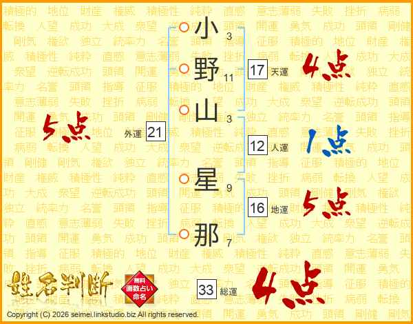 小(3画)野(11画)山(3画) 星(9画)那(7画)