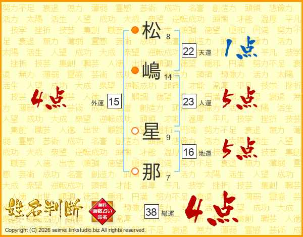 松(8画)嶋(14画) 星(9画)那(7画)