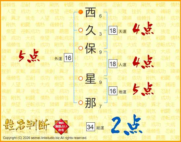 西(6画)久(3画)保(9画) 星(9画)那(7画)