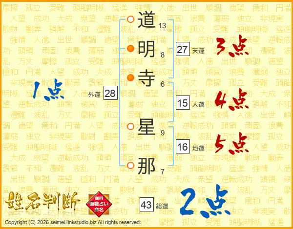 道(13画)明(8画)寺(6画) 星(9画)那(7画)