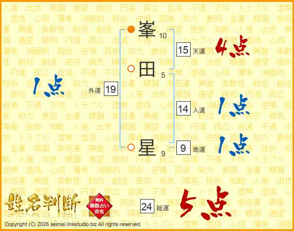 峯田星さんの総運は24画の5点!