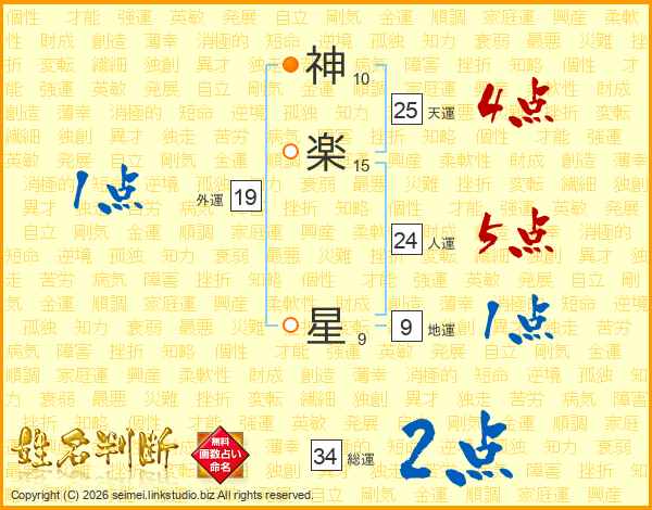 神(10画)楽(15画) 星(9画)