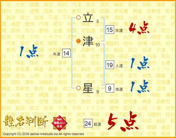 立津星さんの総運は24画の5点!