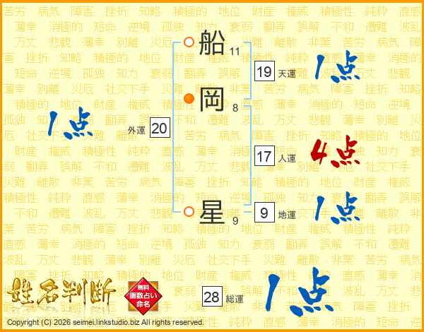 船岡星さんの総運は28画の1点!