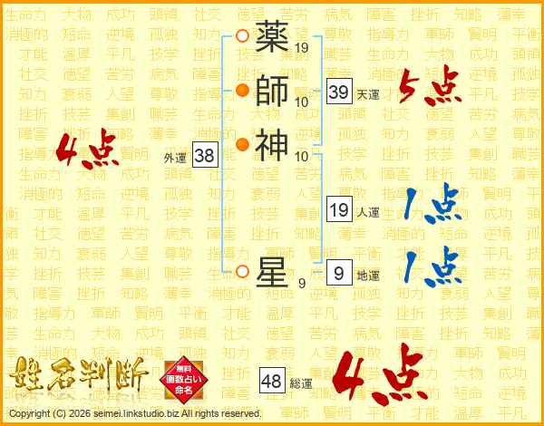 薬師神星さんの総運は48画の4点!