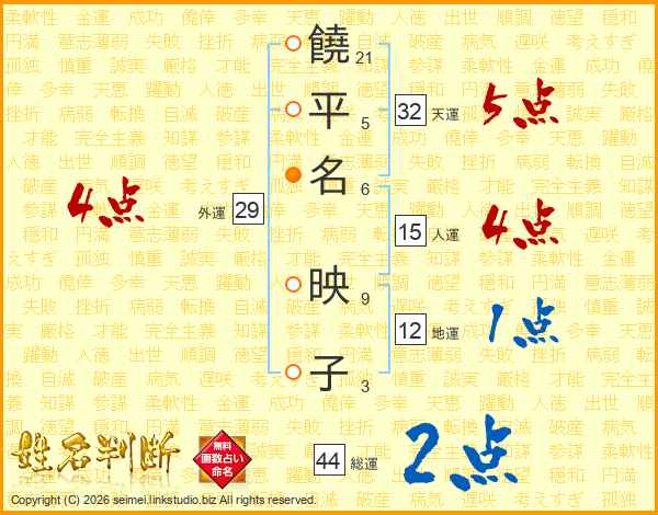 饒平名映子さんの総運は44画の2点!