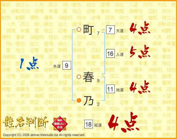 町春乃さんの総運は18画の4点!