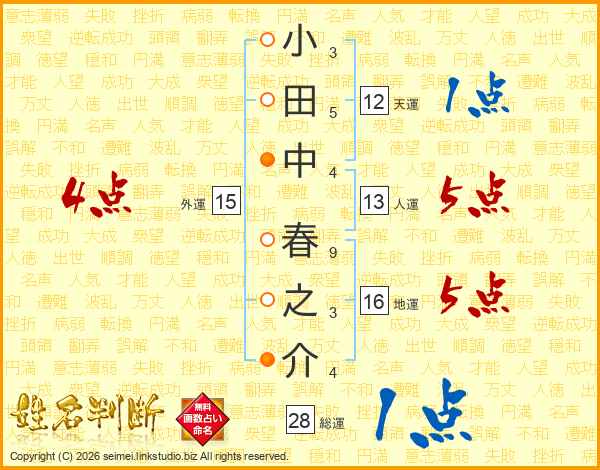 小田中春之介さんの総運は28画の1点!