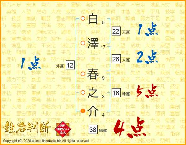 白澤春之介さんの総運は38画の4点!