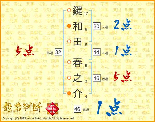 鍵和田春之介さんの総運は46画の1点!