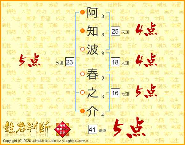 阿(8画)知(8画)波(9画) 春(9画)之(3画)介(4画)