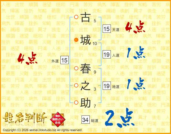 古城春之助さんの天運は15画の4点!