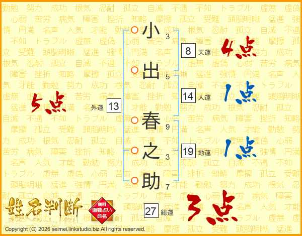 小出春之助さんの外運は13画の5点!