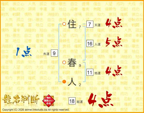 住春人さんの総運は18画の4点!