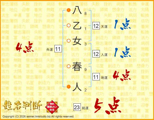 八乙女春人さんの総運は23画の5点!