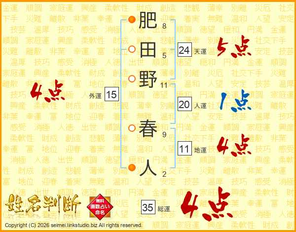 肥田野春人さんの外運は15画の4点!