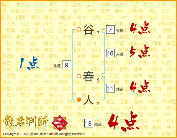 谷春人さんの総運は18画の4点!
