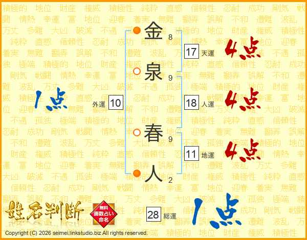 金泉春人さんの総運は28画の1点!