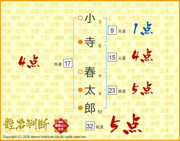 小寺春太郎さんの総運は32画の5点!