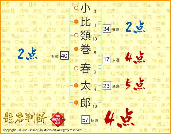 小比類巻春太郎さんの総運は57画の4点!