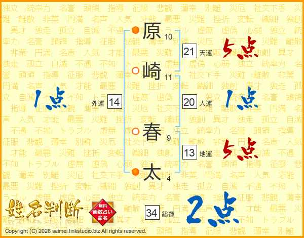 原崎春太さんの総運は34画の2点!