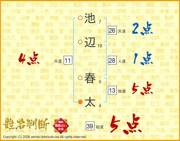 池辺春太さんの総運は39画の5点!
