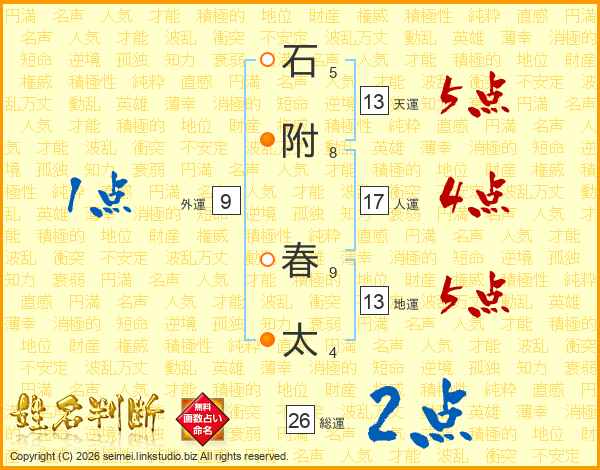 石附春太さんの天運は13画の5点!