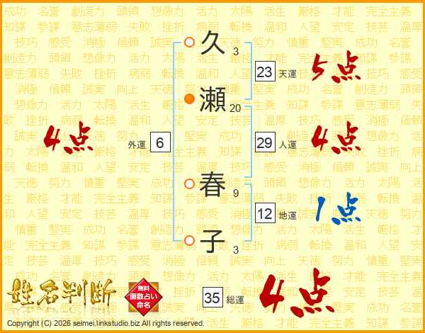 久瀬春子さんの総運は35画の4点!