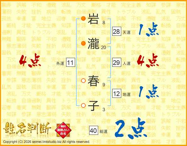 岩瀧春子さんの総運は40画の2点!