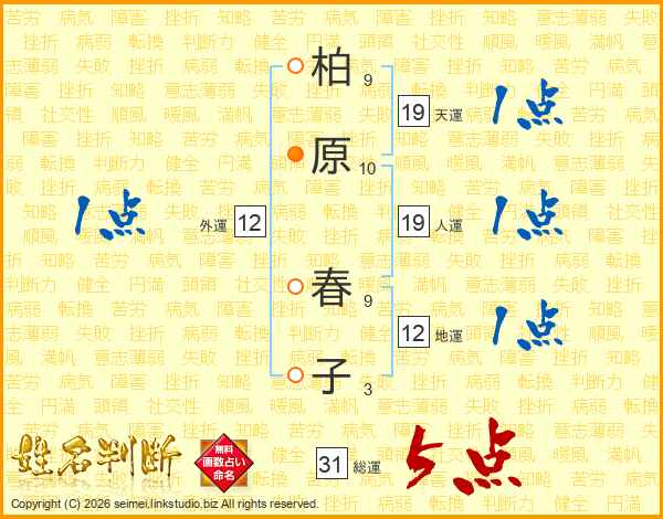 柏原春子さんの総運は31画の5点!