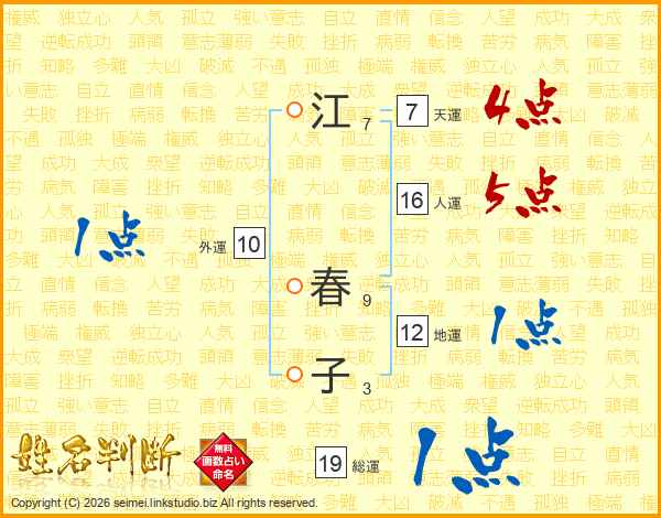 江春子さんの総運は19画の1点!