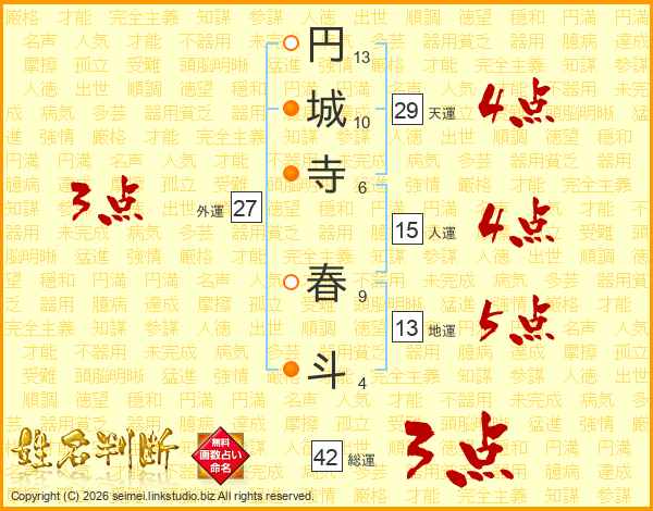 円城寺春斗さんの総運は42画の3点!