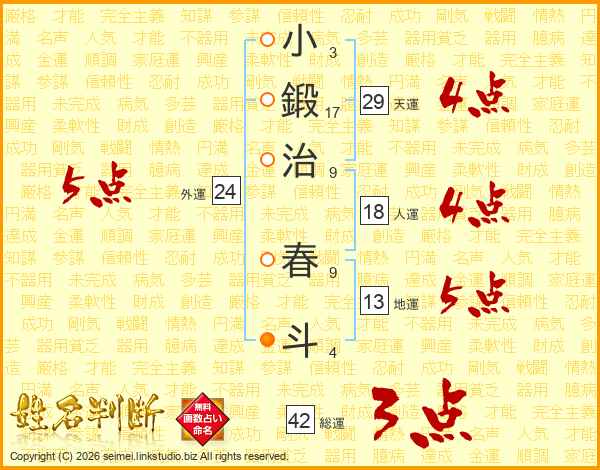 小鍛治春斗さんの総運は42画の3点!