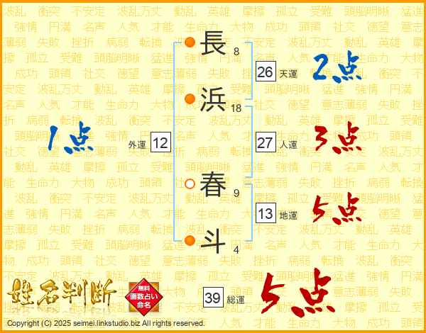 長浜春斗さんの総運は39画の5点!