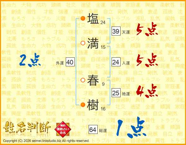 塩(24画)満(15画) 春(9画)樹(16画)