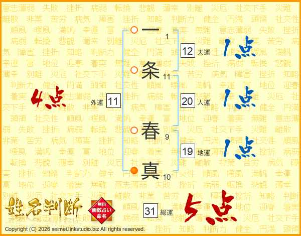 一条春真さんの総運は31画の5点!