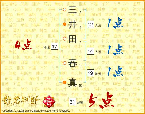 三井田春真さんの総運は31画の5点!