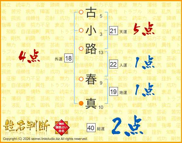 古小路春真さんの天運は21画の5点!
