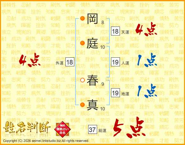 岡庭春真さんの天運は18画の4点!