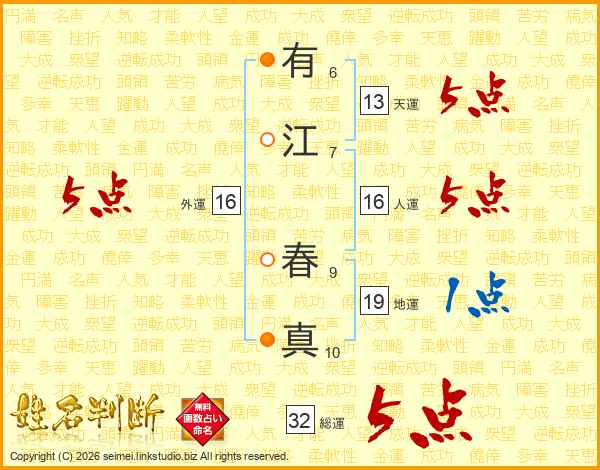 有江春真さんの総運は32画の5点!