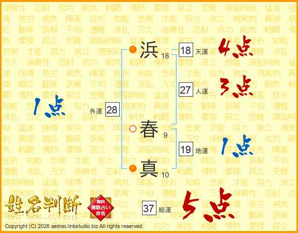 浜(18画) 春(9画)真(10画)