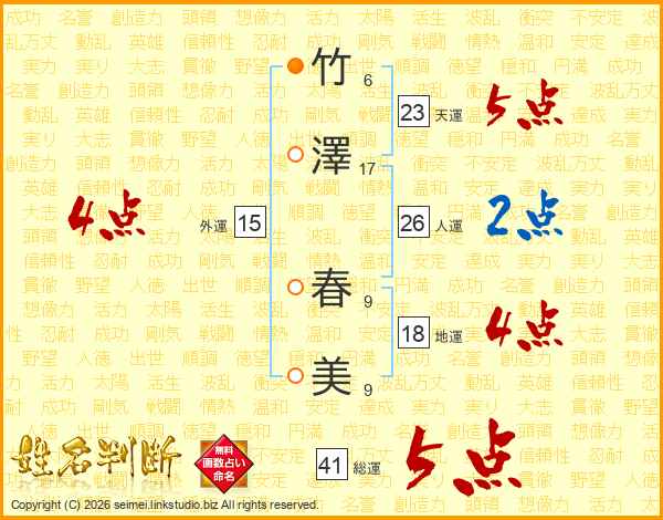竹澤春美さんの総運は41画の5点!
