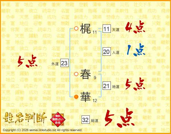 梶春華さんの総運は32画の5点!